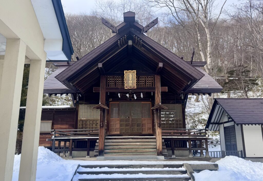 地獄谷のすぐ近くにありながら、境内は凛とした静寂に包まれています。冬は写真のように、真っ白な雪に朱色の社殿が映え、思わず息を呑む美しさです。